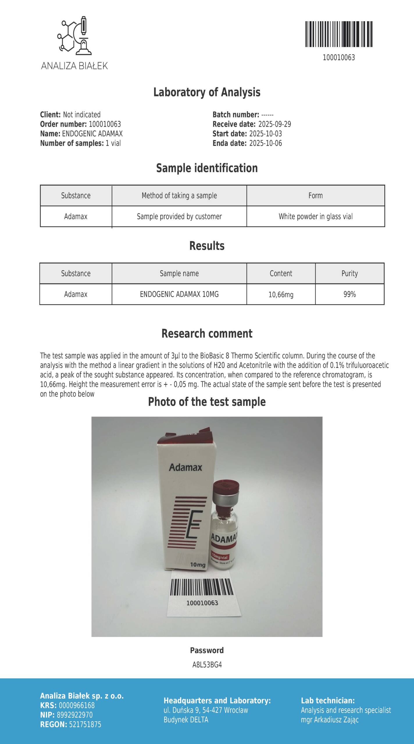 PRODUKT PEPTYD ADAMAX Spray PRZEZNACZONY DO CELÓW BADAWCZYCH!