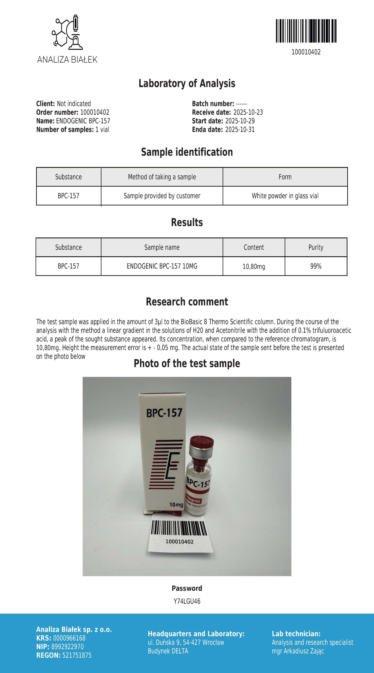 BPC-157 10 mg – peptyd na regenerację